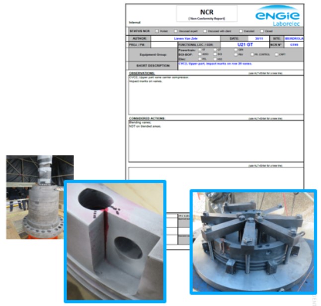 Laborelec ofrece el servicio de interventoría y acompañamiento técnico durante los procesos de inspección y reparación de la turbina, especialista de Laborelec monitoreara y evaluara de forma independiente la calidad de los trabajos realizados por el fabricante, y reportaran acciones sub estándares o que pudiesen ser mejoradas (QA/QC: Quality Audit / Quality Check).